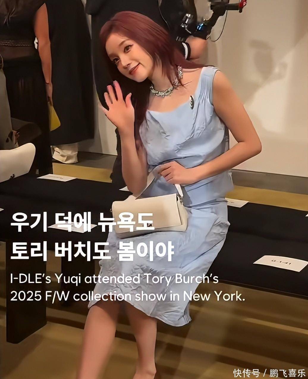 初代偶像郑秀晶还是那么稳,黑色内衣搭亮面皮衣和阔腿裤,酷飒得毫不费力。31岁的脸配上优越骨相,自然妆效下全是饱满的生命力,镜头怼脸也毫无压力。同场的娜然则选了all white套装,虽然造型低调,但那张高折叠度的脸,随便哪个角度都像精心构图,95花里确实有她的位置。 年轻一辈也没落下,宋雨琦作为汤丽柏琦的座上宾,水蓝褶皱裙配红发,在纽约的冰天雪地里甜酷出圈。程潇则以COACH眼镜代言人的身份亮相,美拉德色系长裙加眼镜,都市感十足,下了秀场啃泡面的样子,又瞬间接地气了。